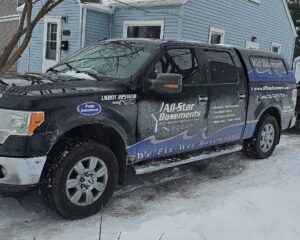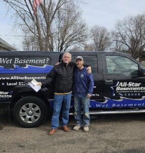 Today, one crew was in Rochester, MN installing a full basement All-Star Drain System with our Two-Star Sump System. GO, TEAM!!! We are a proud